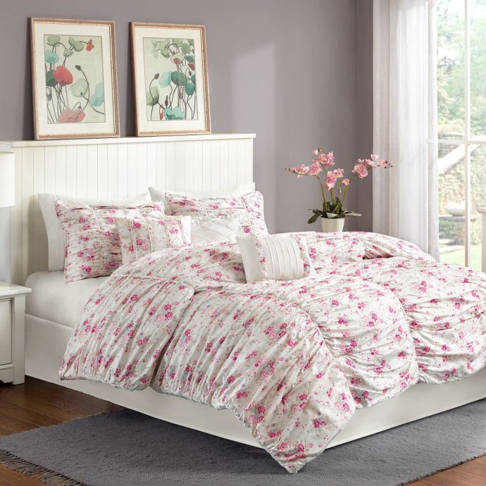 Asymmetrical floral print comforter set on soft microfiber. Enjoy free shipping on most stuff, even big stuff. One comforter (88 x 92) , one bedskirt (60 x 80) and two shams (26 x 20). Laura ashley wisteria collection luxury ultra soft comforter, all season premium bedding set, stylish delicate design for home décor, queen, blush. This ashley quilt set invigorates your bedroom with a playful vibe.